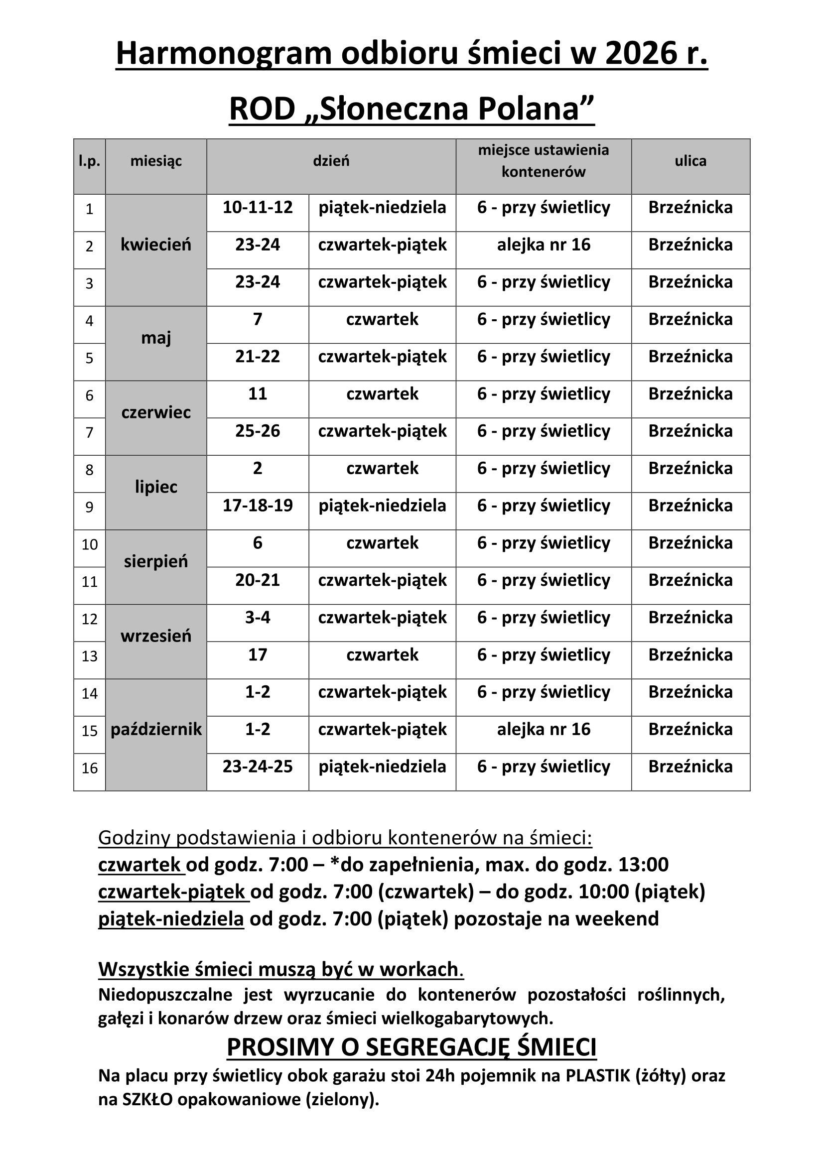 Przypominamy, iż zbieranie za zużyta energię elektryczną na poszczególnych działkach jest dwa razy w roku: maj-czerwiec oraz wrzesień-październik. Po upływie 3 miesięcy od terminu płatności, działka zostaje odłączona od energii elektrycznej.