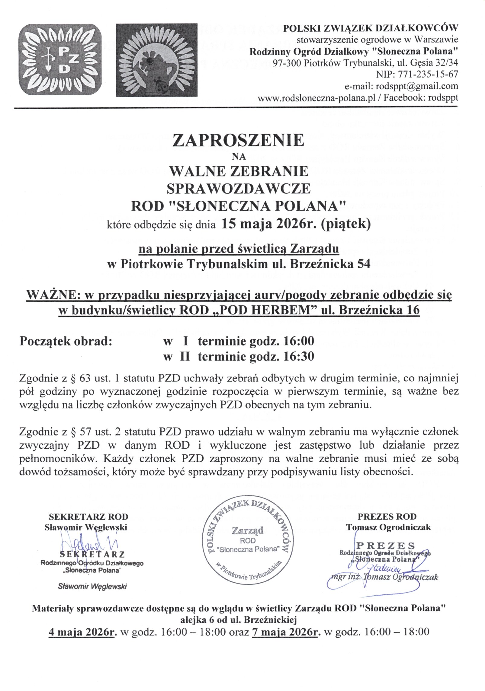Witamy na stronie Rodzinnego Ogrodu Działkowego "Słoneczna Polana" w Piotrkowie Trybunalskim